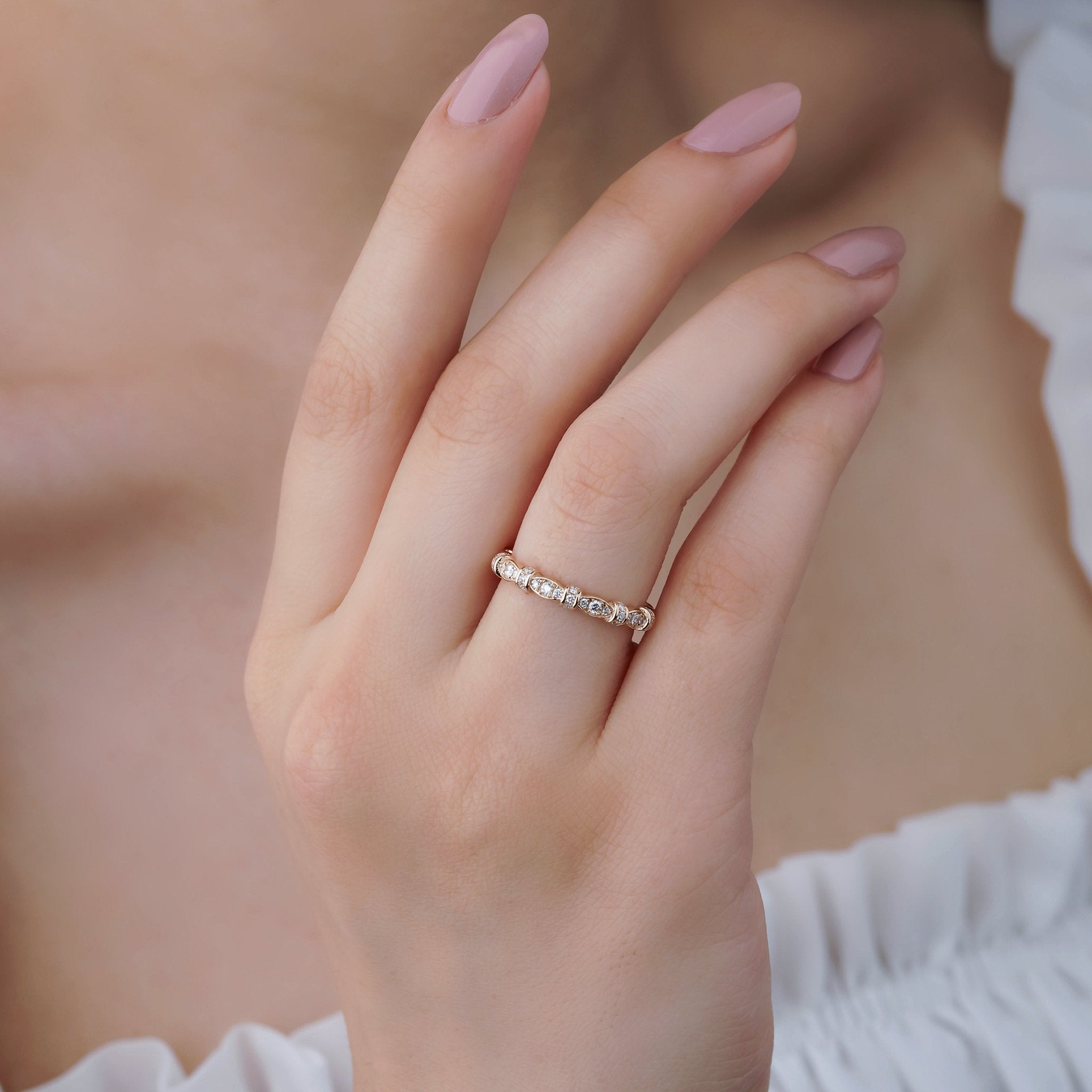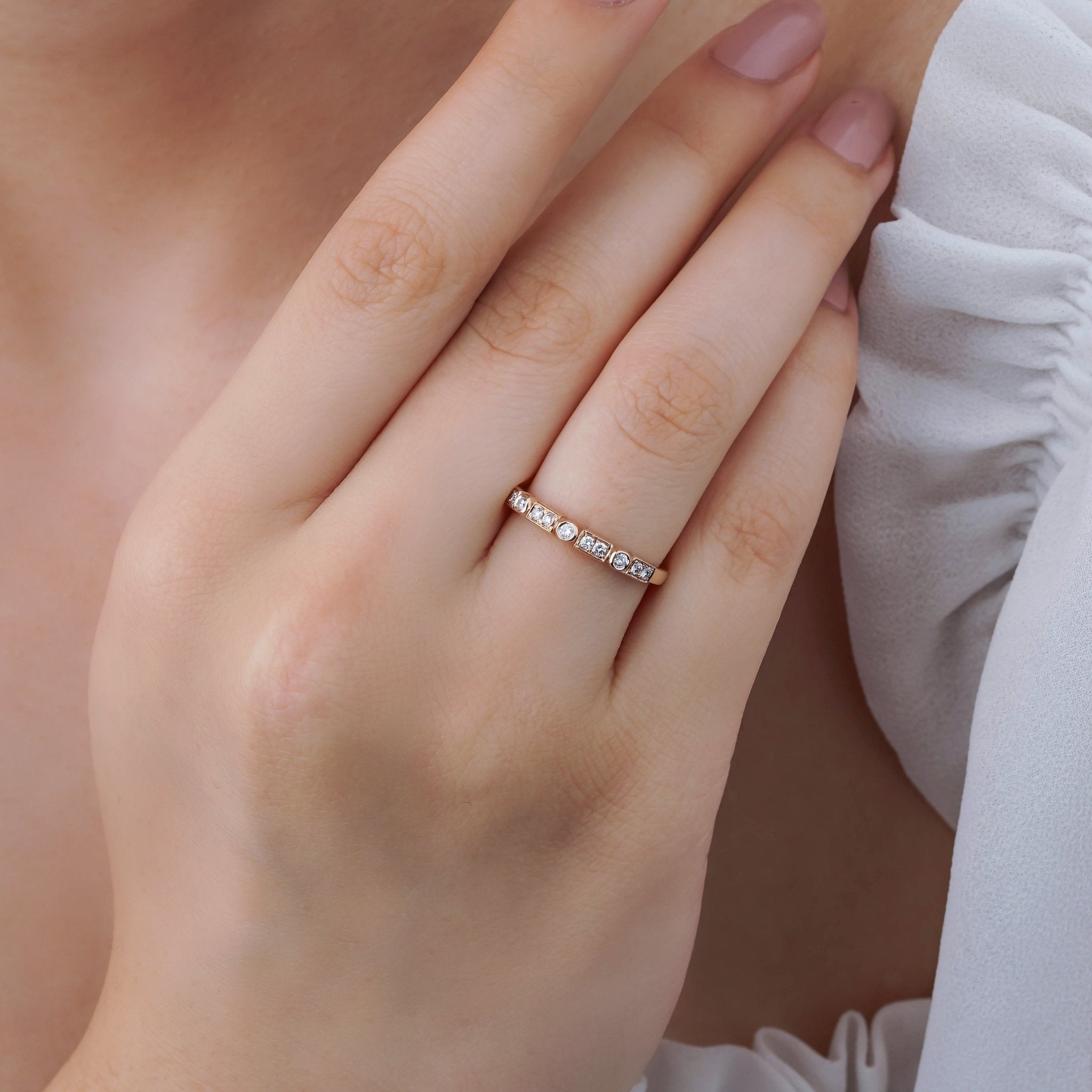 This magnificent Half Round Diamond Ring can be designed in different options. You can contact us to create your own design or make special requests. The weight of the Half Round Diamond Ring product may vary depending on the dimensions you choose.