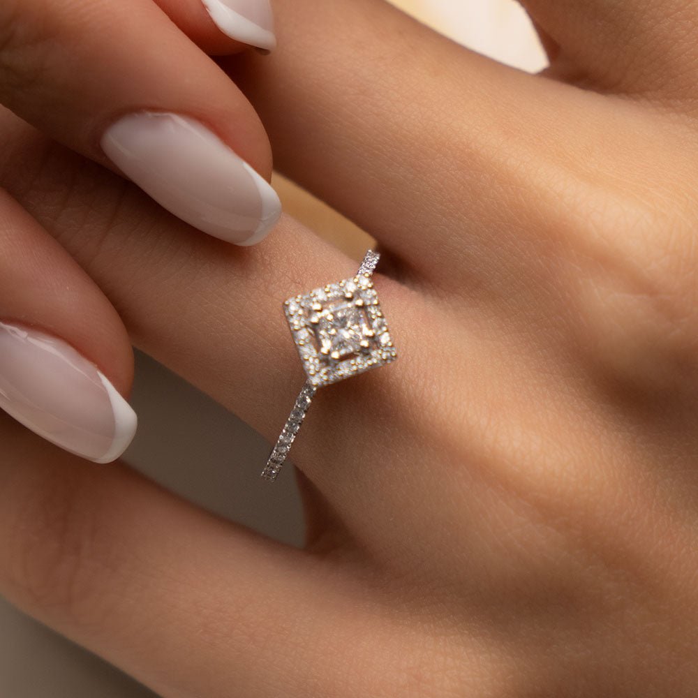 This magnificent Princess Diamond Ring can be designed in different options. You can contact us to create your own design or make special requests. The weight of the Princess Diamond Ring product may vary depending on the dimensions you choose.