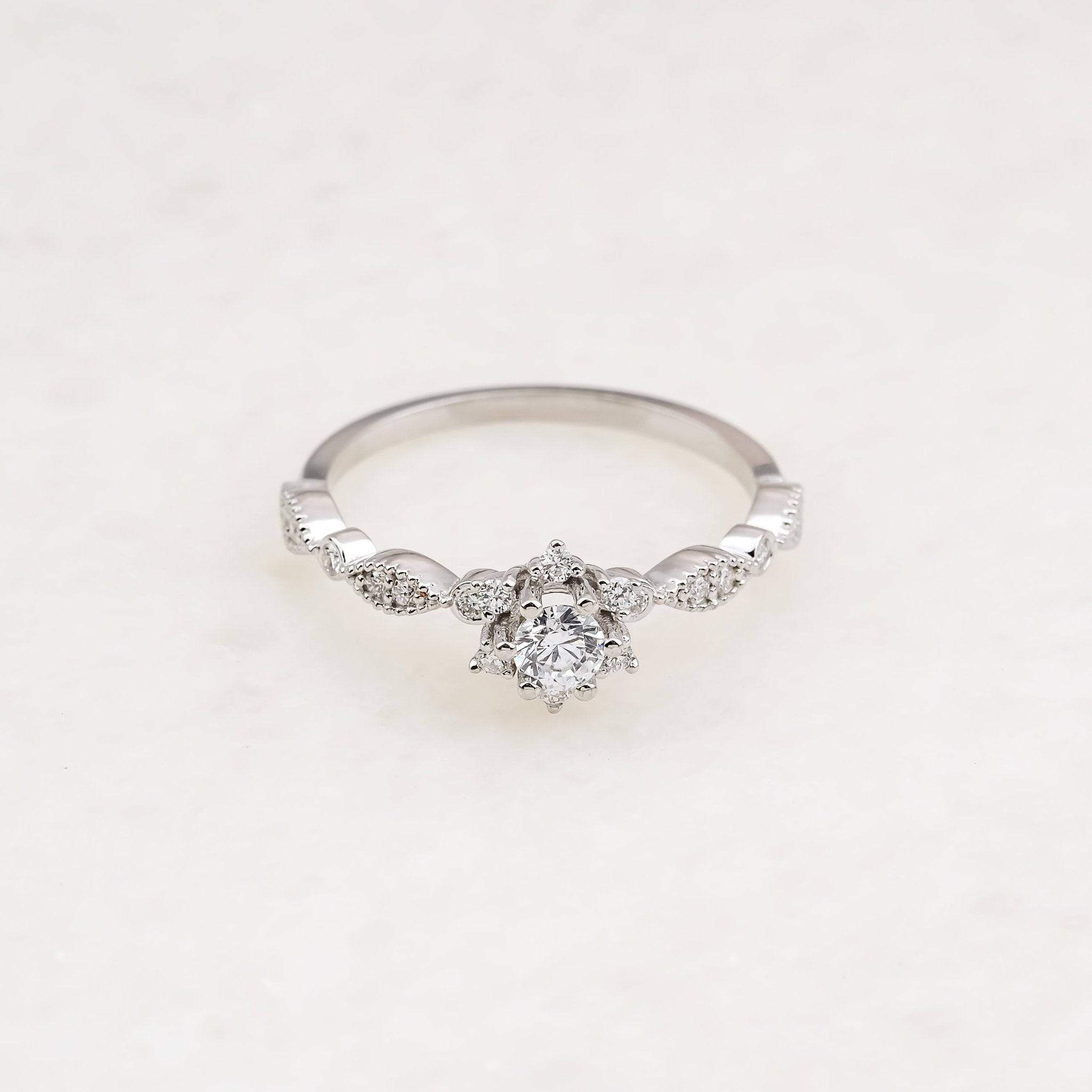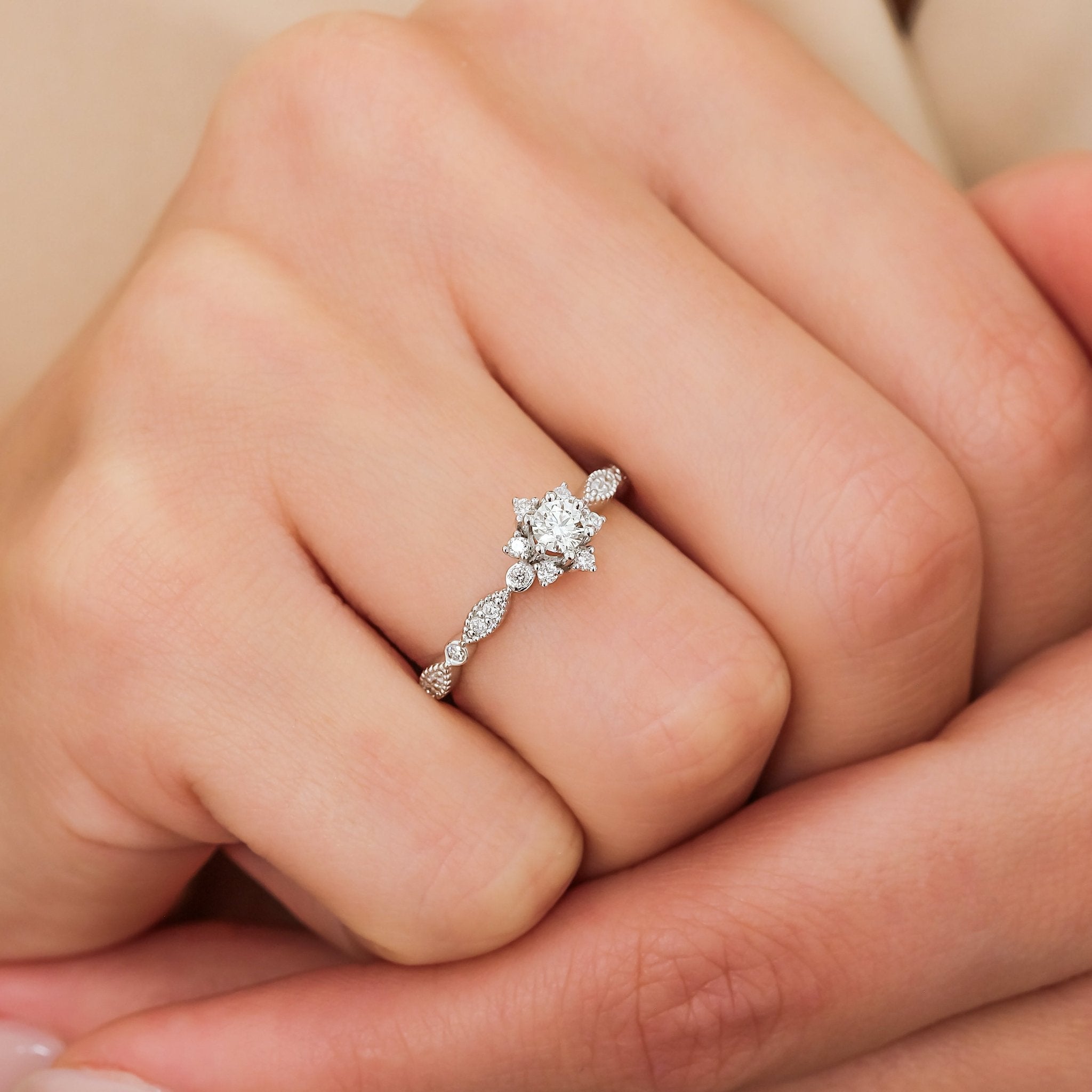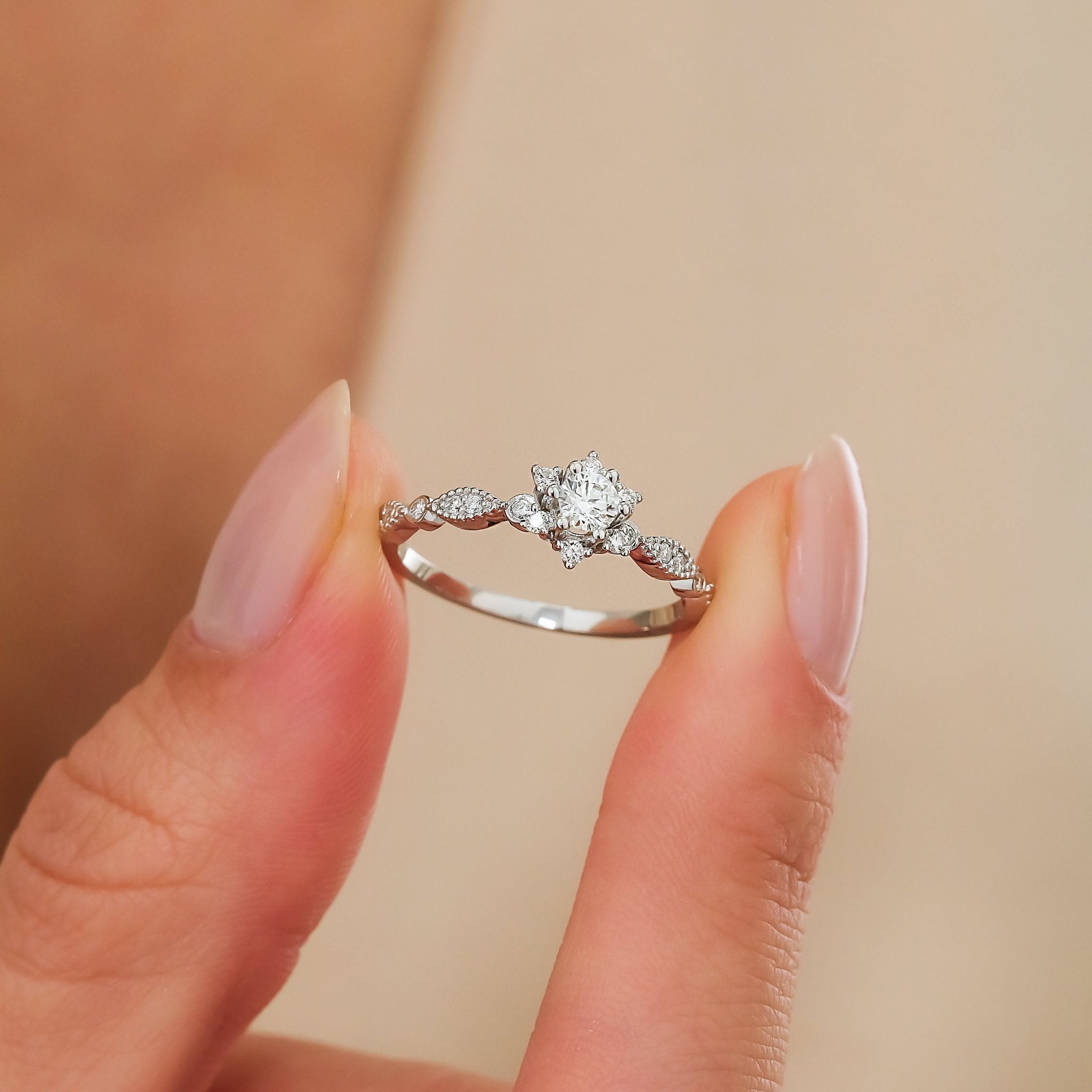 0.20 Carat Round Center & 0.12 Carat Edge Diamond Lotus Ring - RNF0918