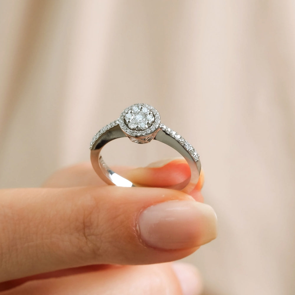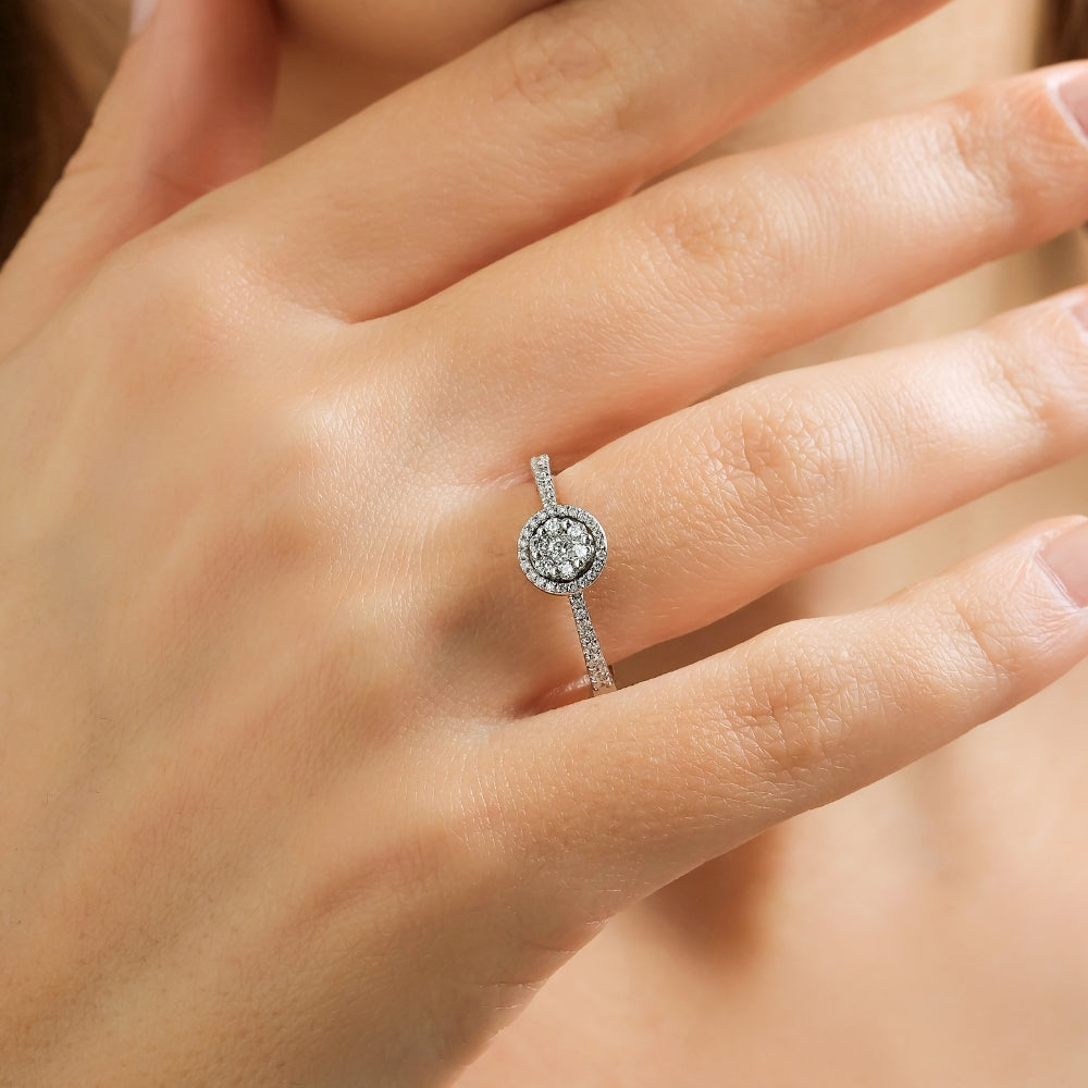 The 0.34 Carat Diamond Ring model is specially designed using 14 Carat White Gold weighing approximately 3.27 grams.