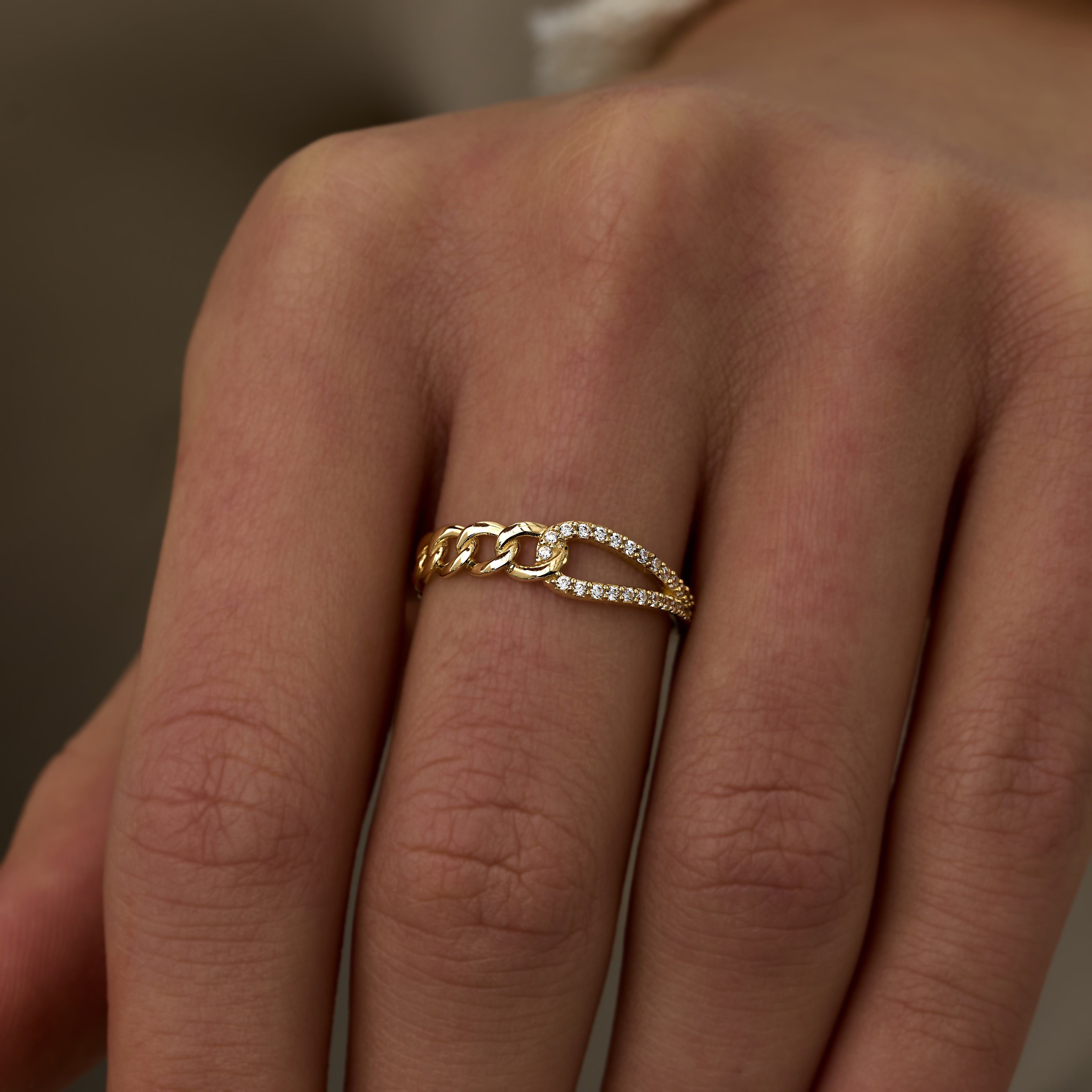 14 Ayar Altın Zincir Formlu Pırlantalı Yüzük RG068