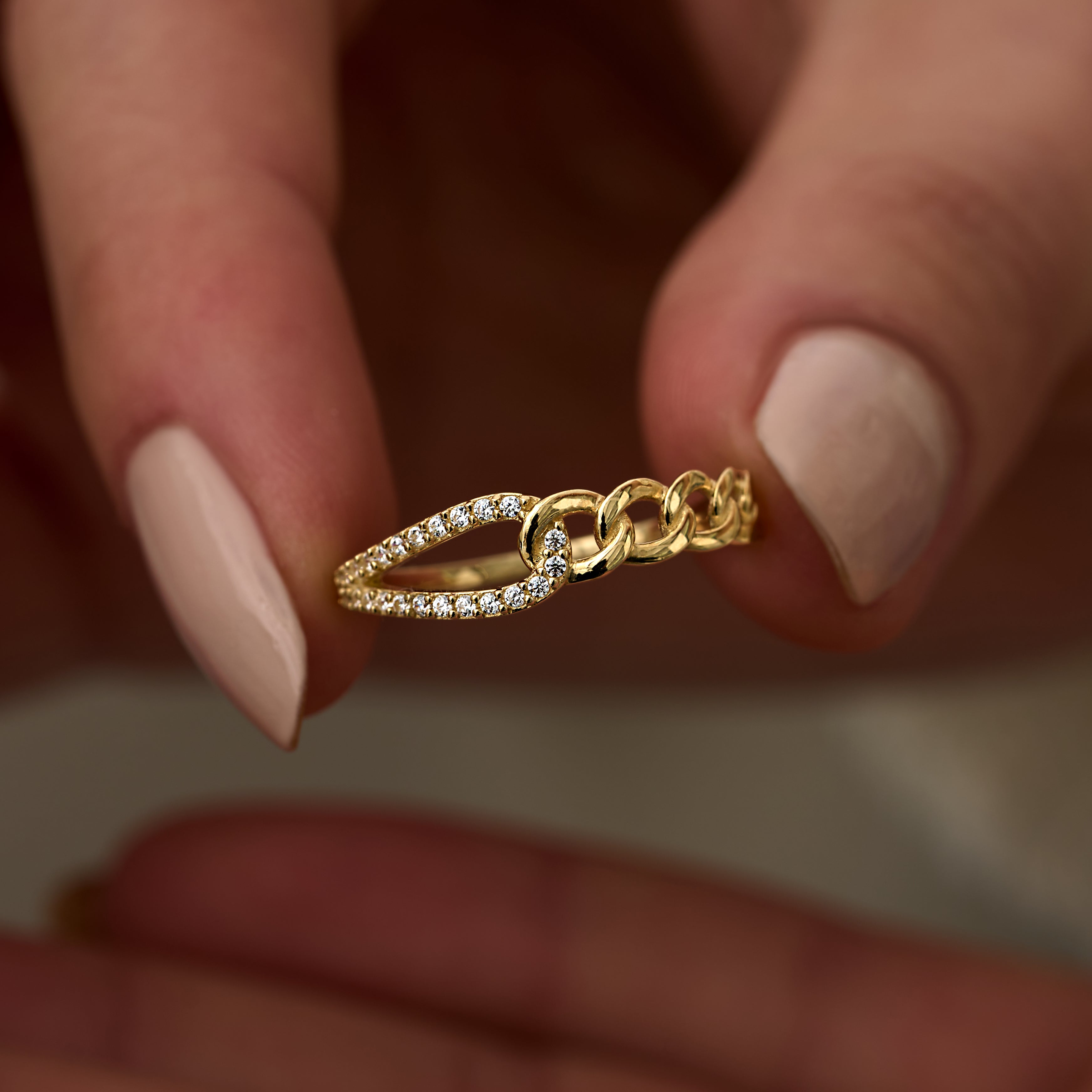 14 Ayar Altın Zincir Formlu Pırlantalı Yüzük RG068 | altın | Ronaff Pırlanta | Tektaş Yüzük, Pırlanta Yüzük, Kolye, Küpe