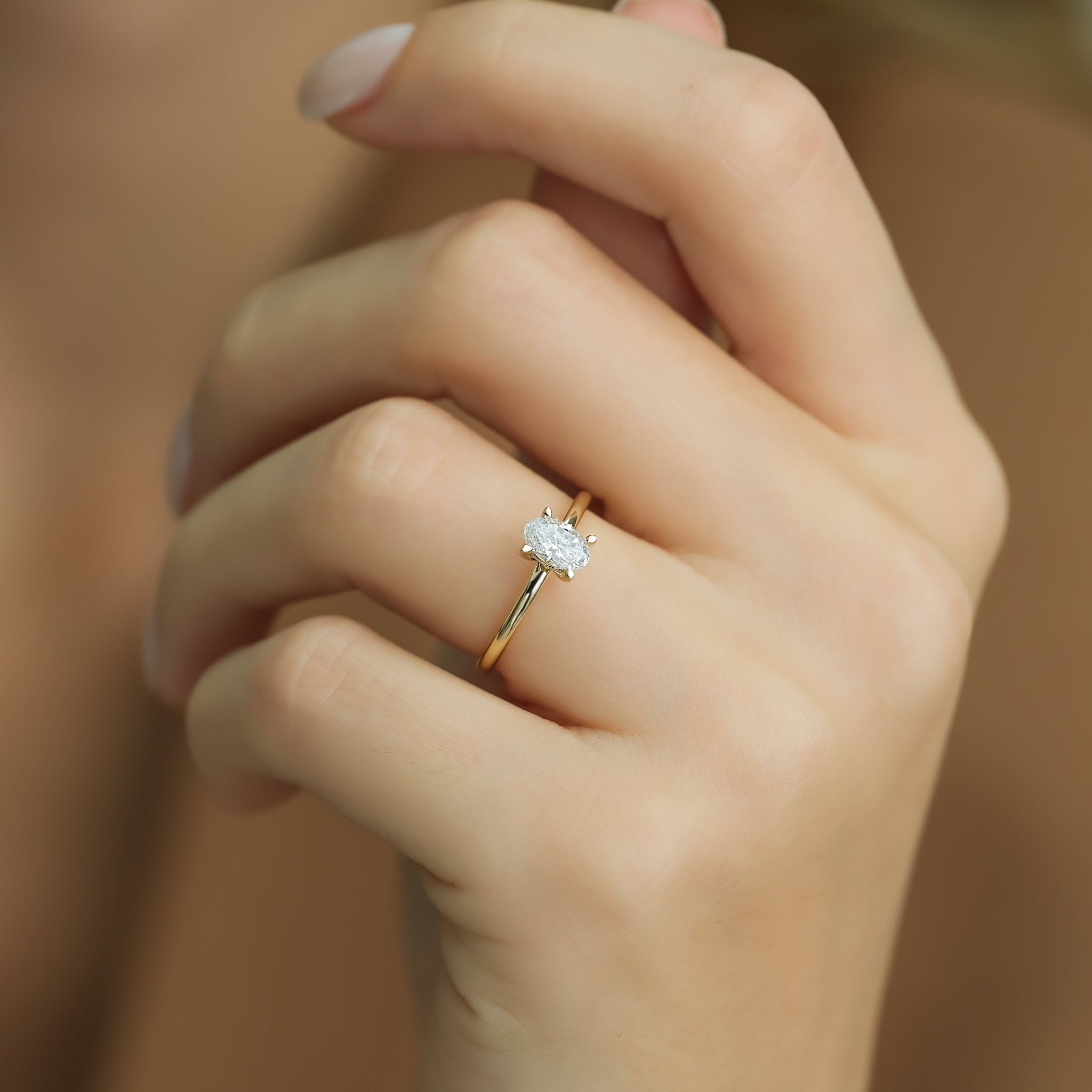 0.46 Karat Oval Kesim HRD Sertifikalı Tektaş Pırlanta Yüzük - RNF0822