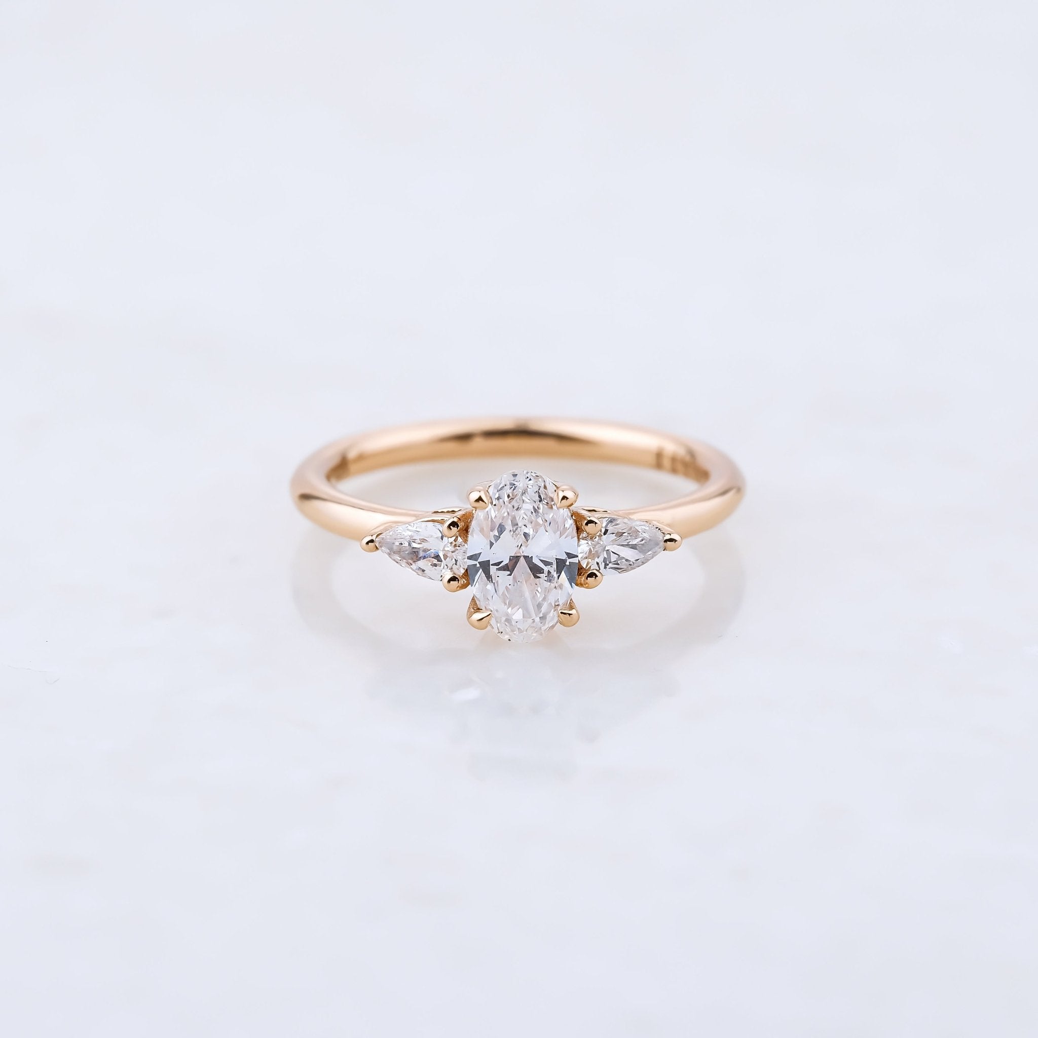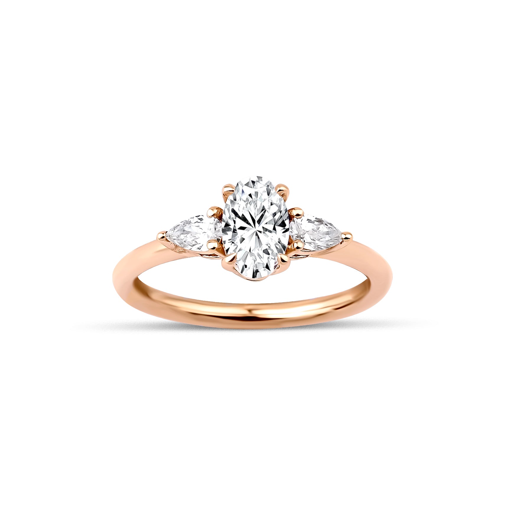 0.50 karat Merkez Oval Kesim & 0.20 Karat Kenar Damla Kesim Özel Tasarım Tektaş Pırlanta Yüzük modeli, yaklaşık 3.00 gr ağırlığında 14 Ayar Rose Altın kullanılarak özel olarak tasarlanmıştır.