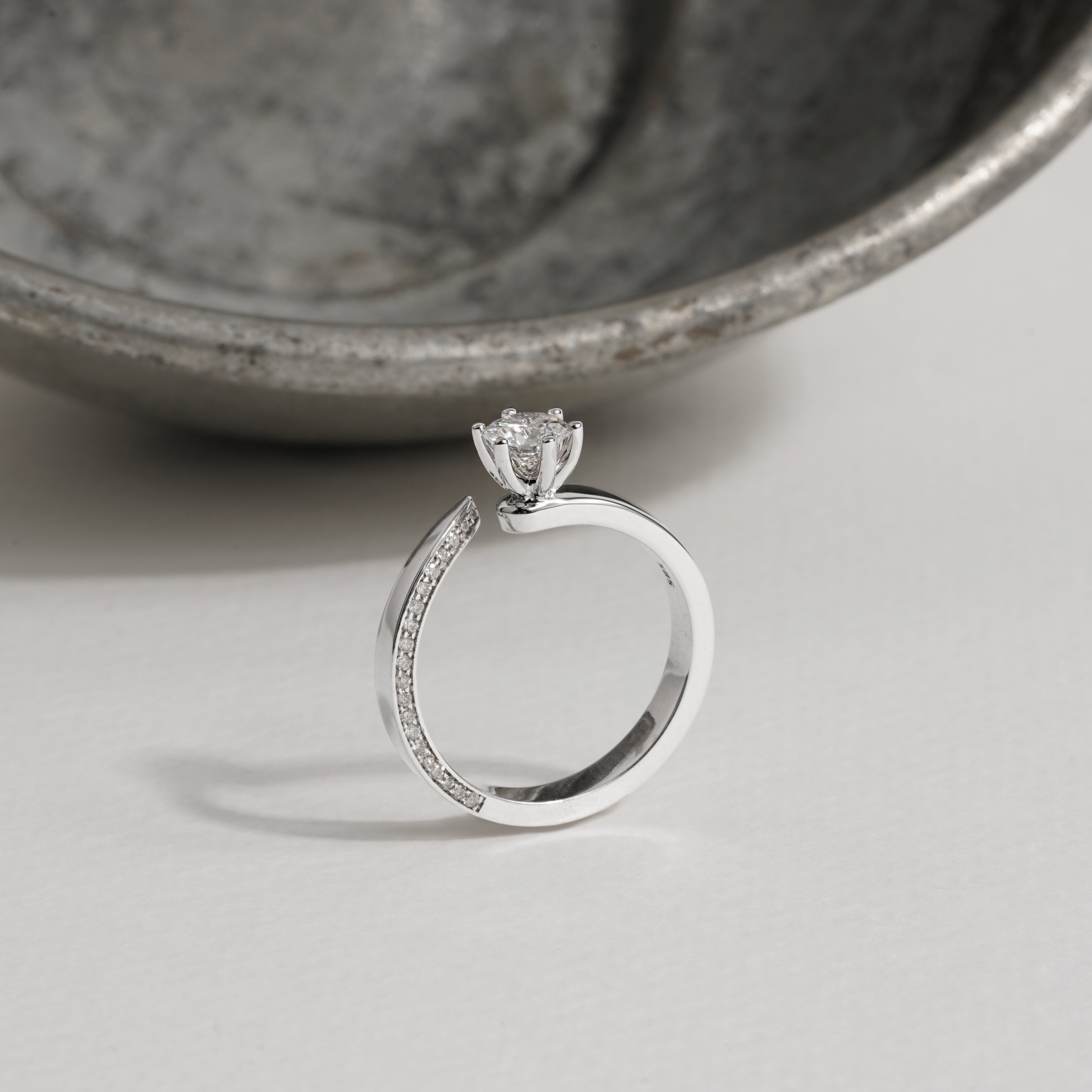 0.50 Karat Yuvarlak Merkez & 0.18 Karat Kenar Pırlanta GIA/HRD Sertifikalı Özel Tasarım Tektaş Yüzük modeli, yaklaşık 1.80 gr ağırlığında 14 Ayar Beyaz Altın kullanılarak özel olarak tasarlanmıştır.