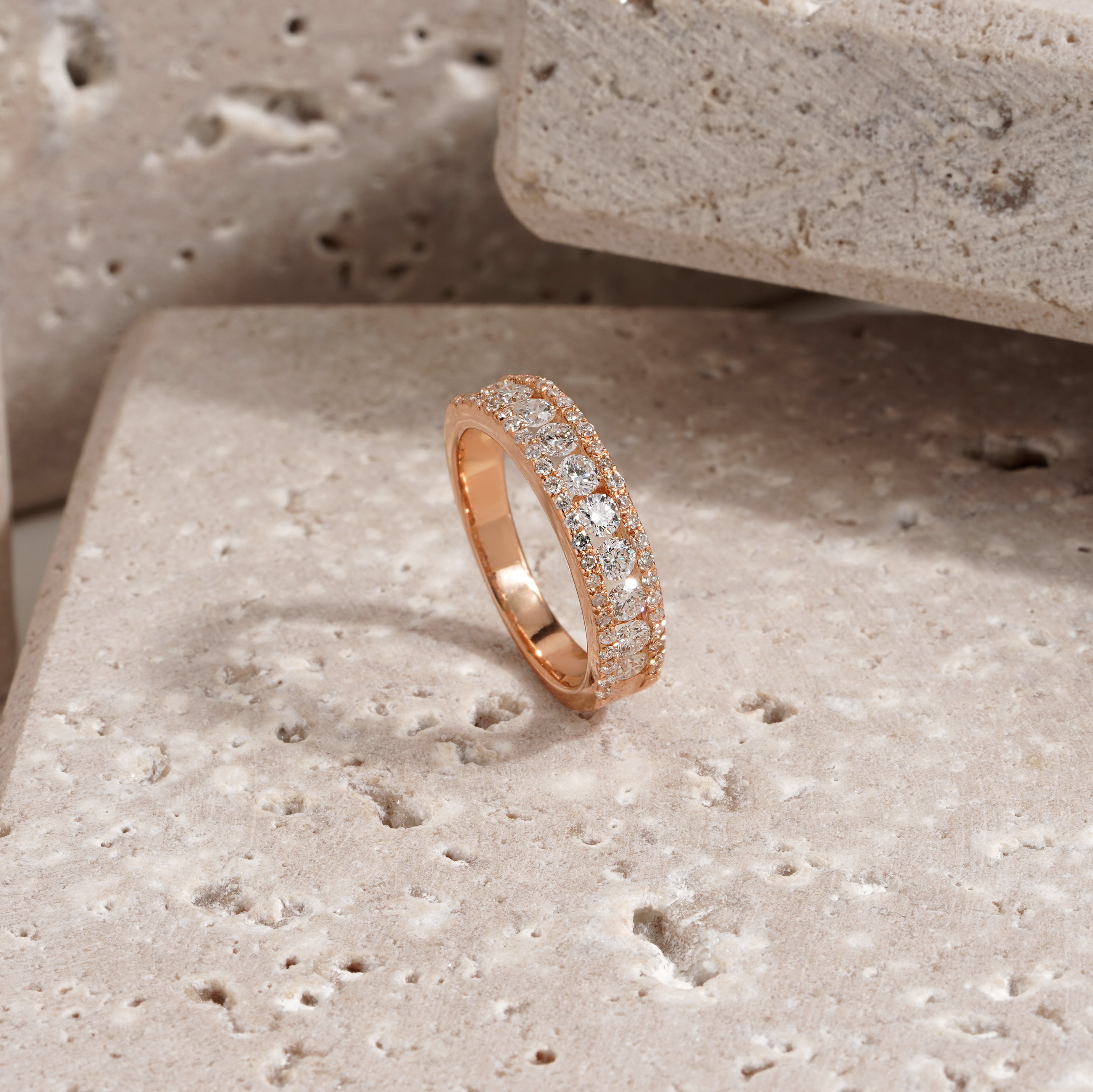 0.80 Karat Yuvarlak Kesim Yarımtur Yüzük modeli, yaklaşık 3.36 gr ağırlığında 14 Ayar Rose Altın kullanılarak özel olarak tasarlanmıştır.
