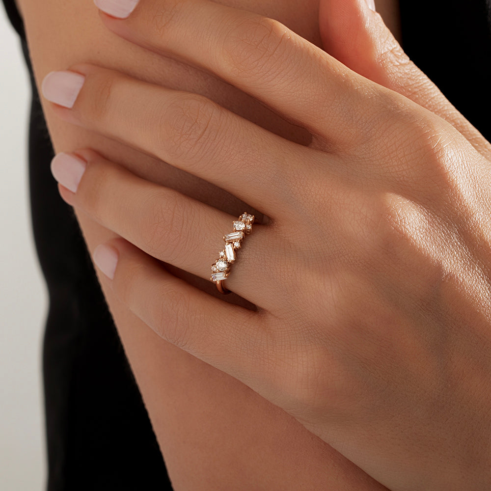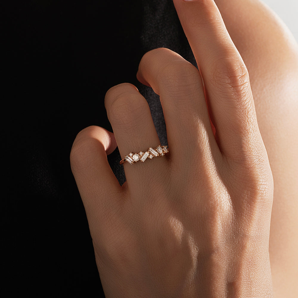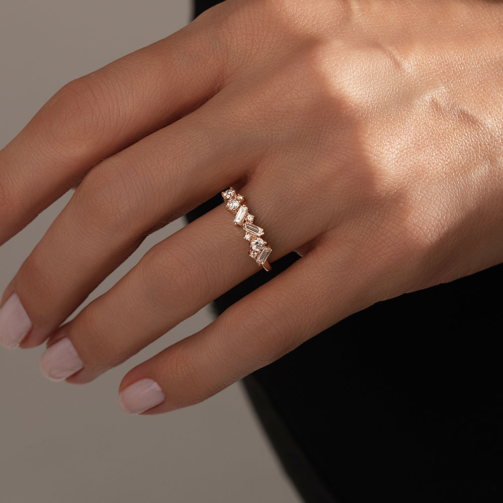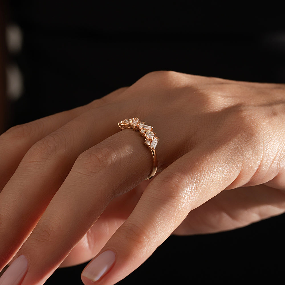 0.20 Karat Baget & 0.10 Karat Yuvarlak Pırlanta Yüzük modeli, yaklaşık 2.60 gr ağırlığında 14 Ayar Rose Altın kullanılarak özel olarak tasarlanmıştır.
