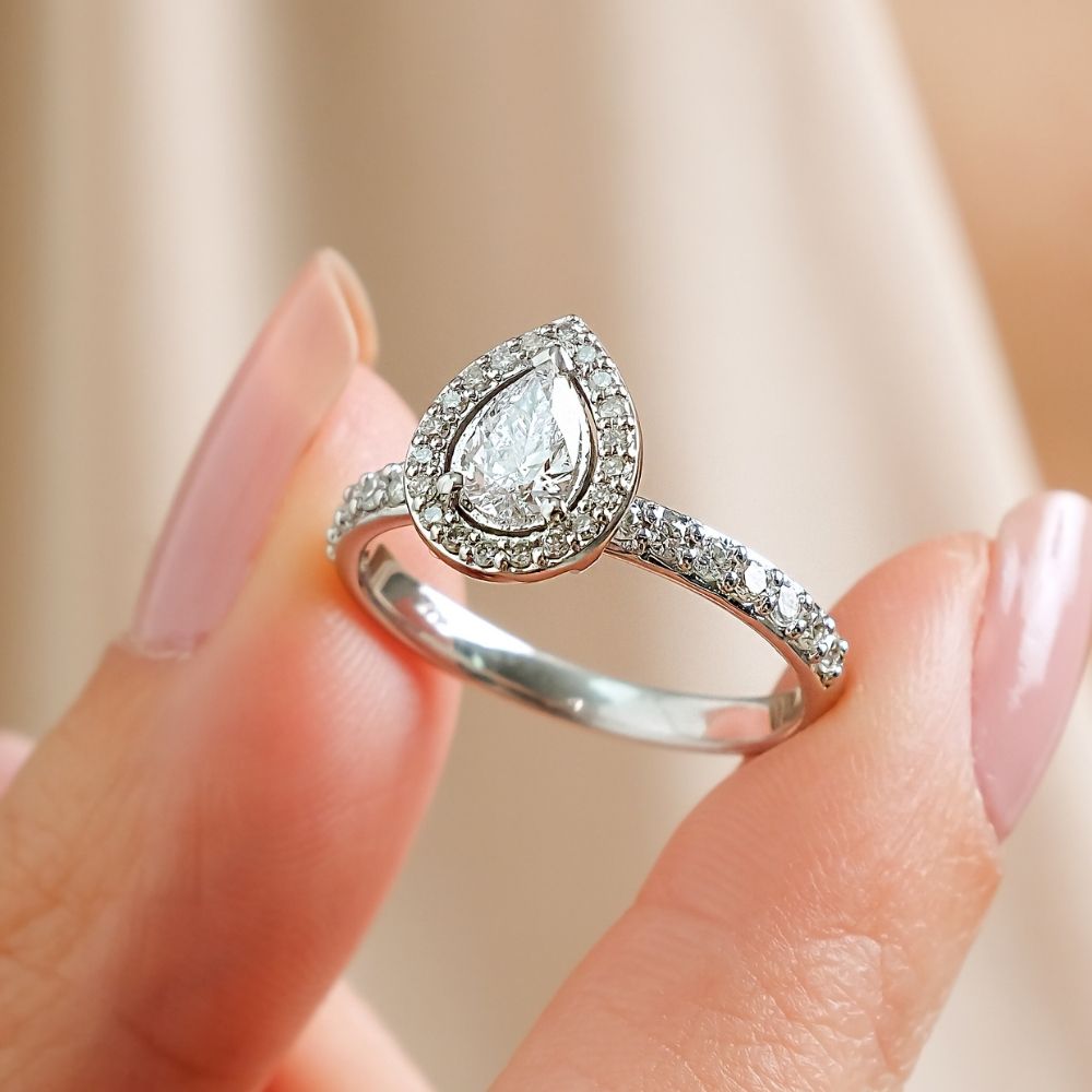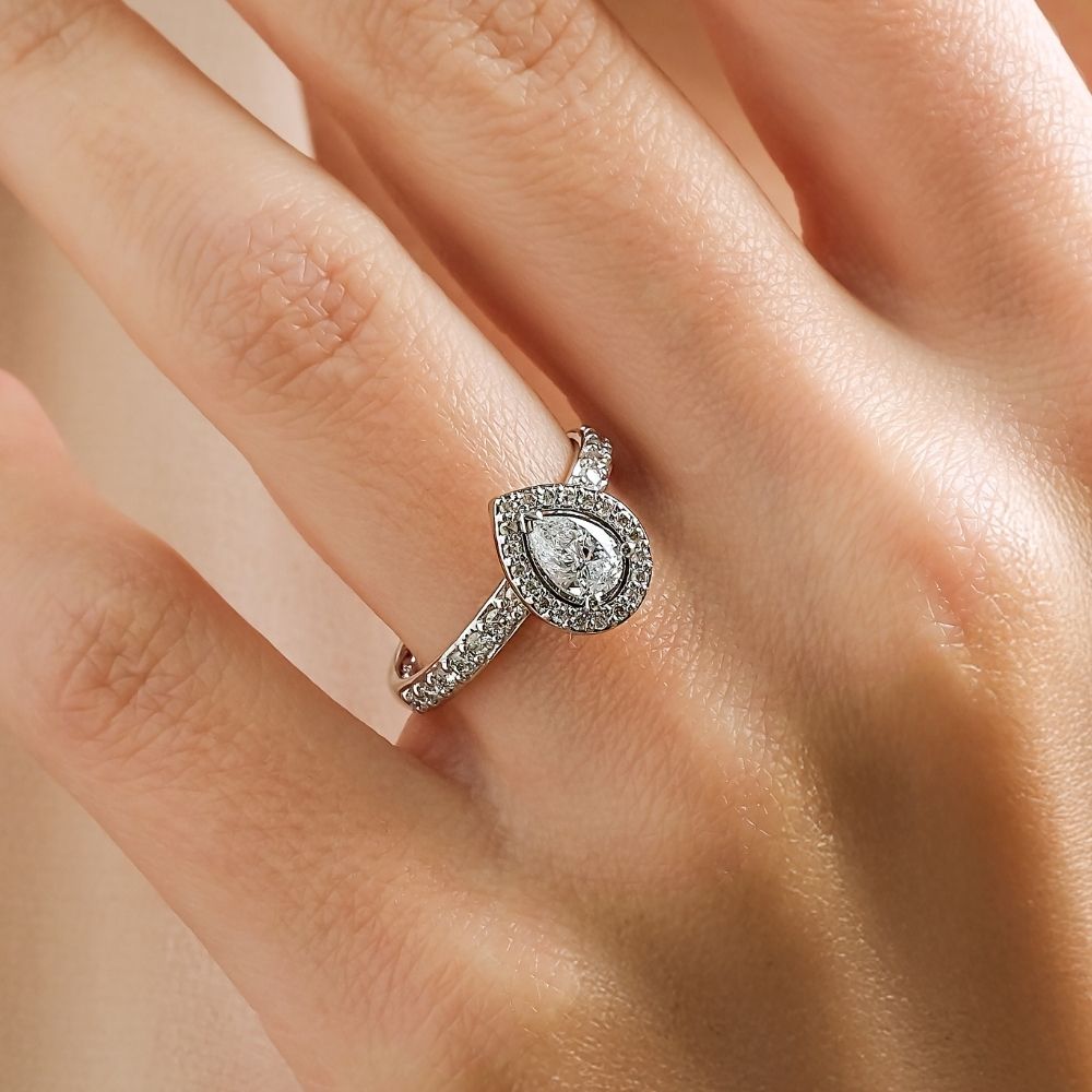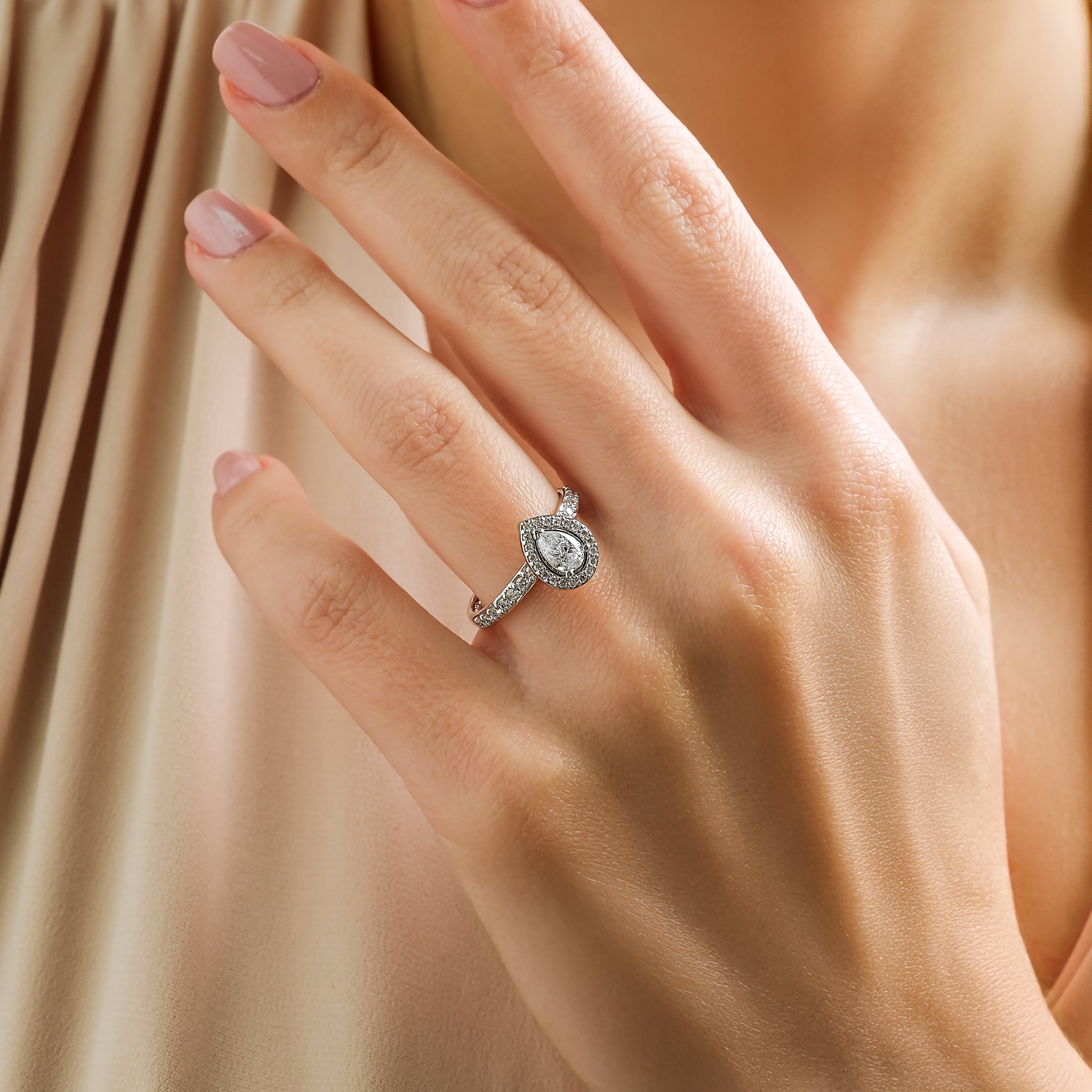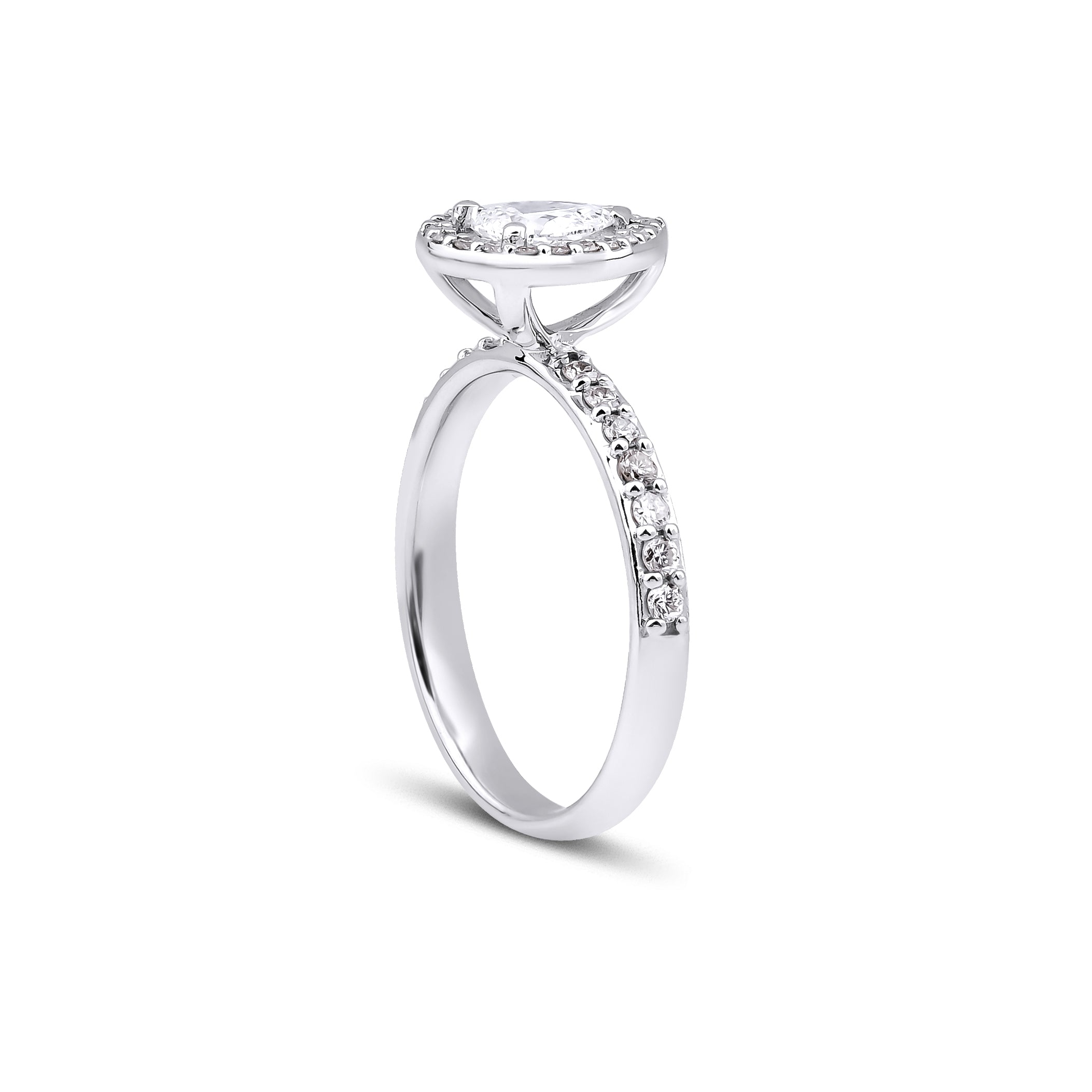 0.40 Karat Damla Kesim & 0.20 Karat Çevre Pırlanta GIA/HRD Sertifikalı Tektaş Yüzük modeli, yaklaşık 2.80 gr ağırlığında 14 Ayar Beyaz Altın kullanılarak özel olarak tasarlanmıştır.