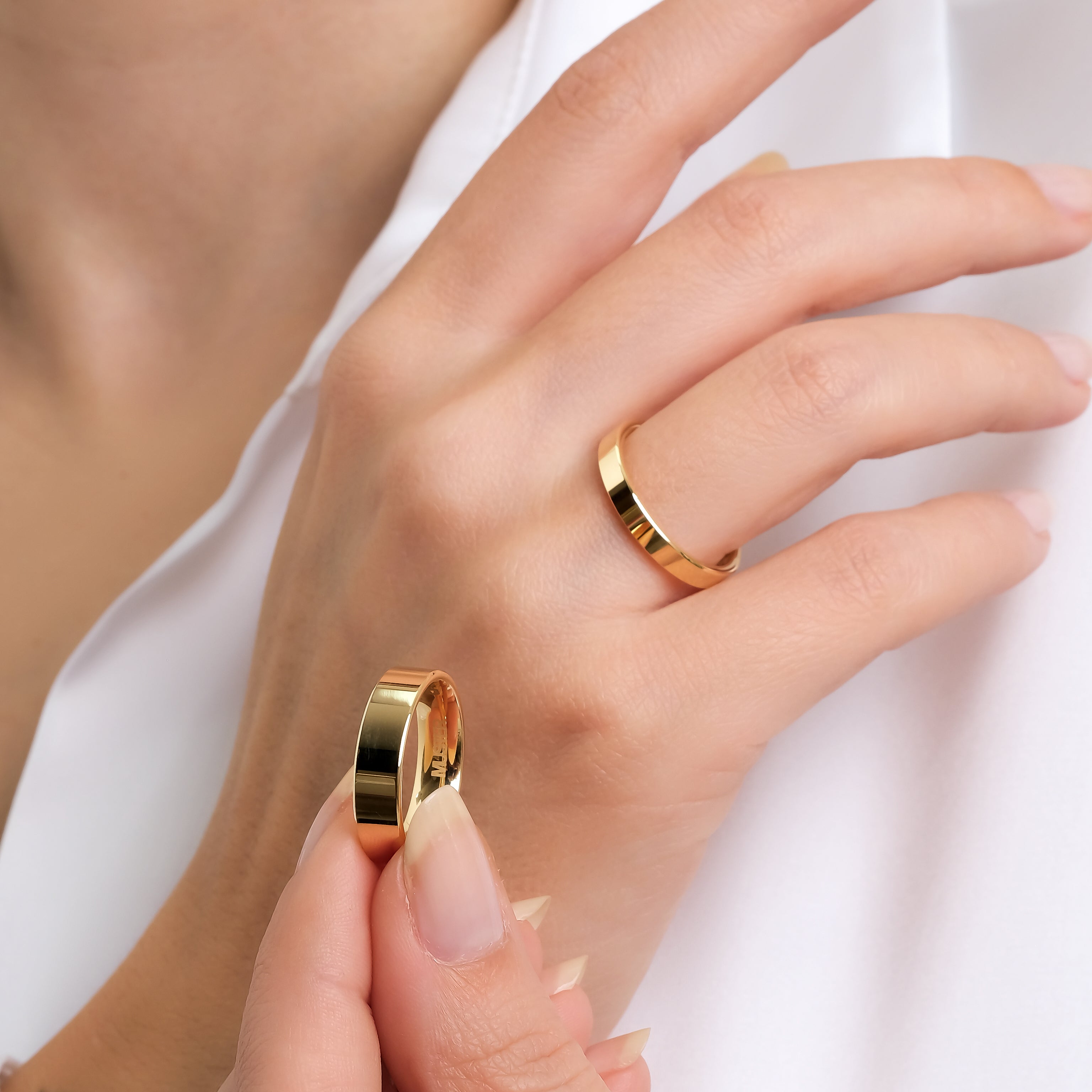 3 mm & 4 mm Çift Sarı Altın Düz Alyans modeli, yaklaşık 6.68 gr ağırlığında 14 Ayar Sarı Altın kullanılarak özel olarak tasarlanmıştır.