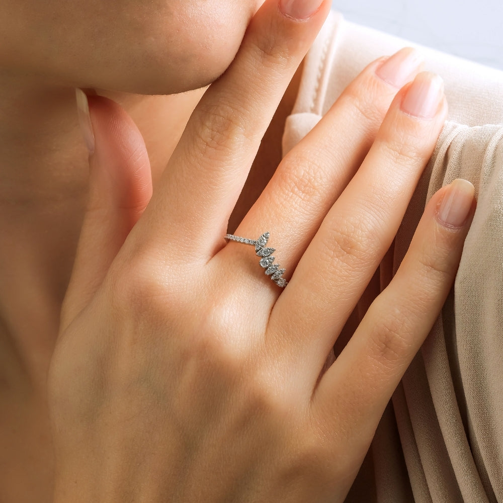 0.33 Karat Pırlanta Yüzük modeli, yaklaşık 1.52 gr ağırlığında 14 Ayar Beyaz Altın kullanılarak özel olarak tasarlanmıştır.