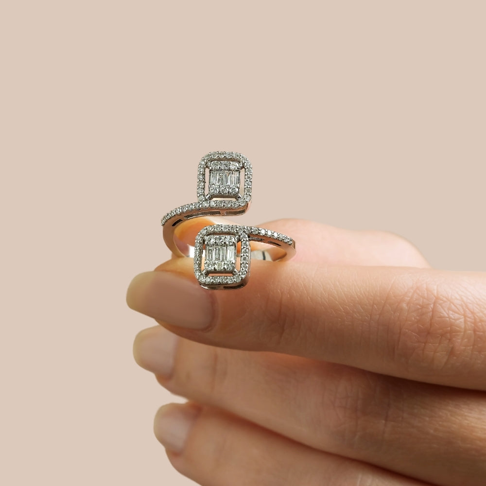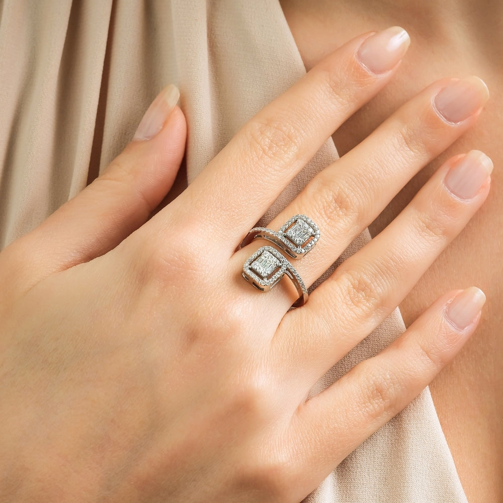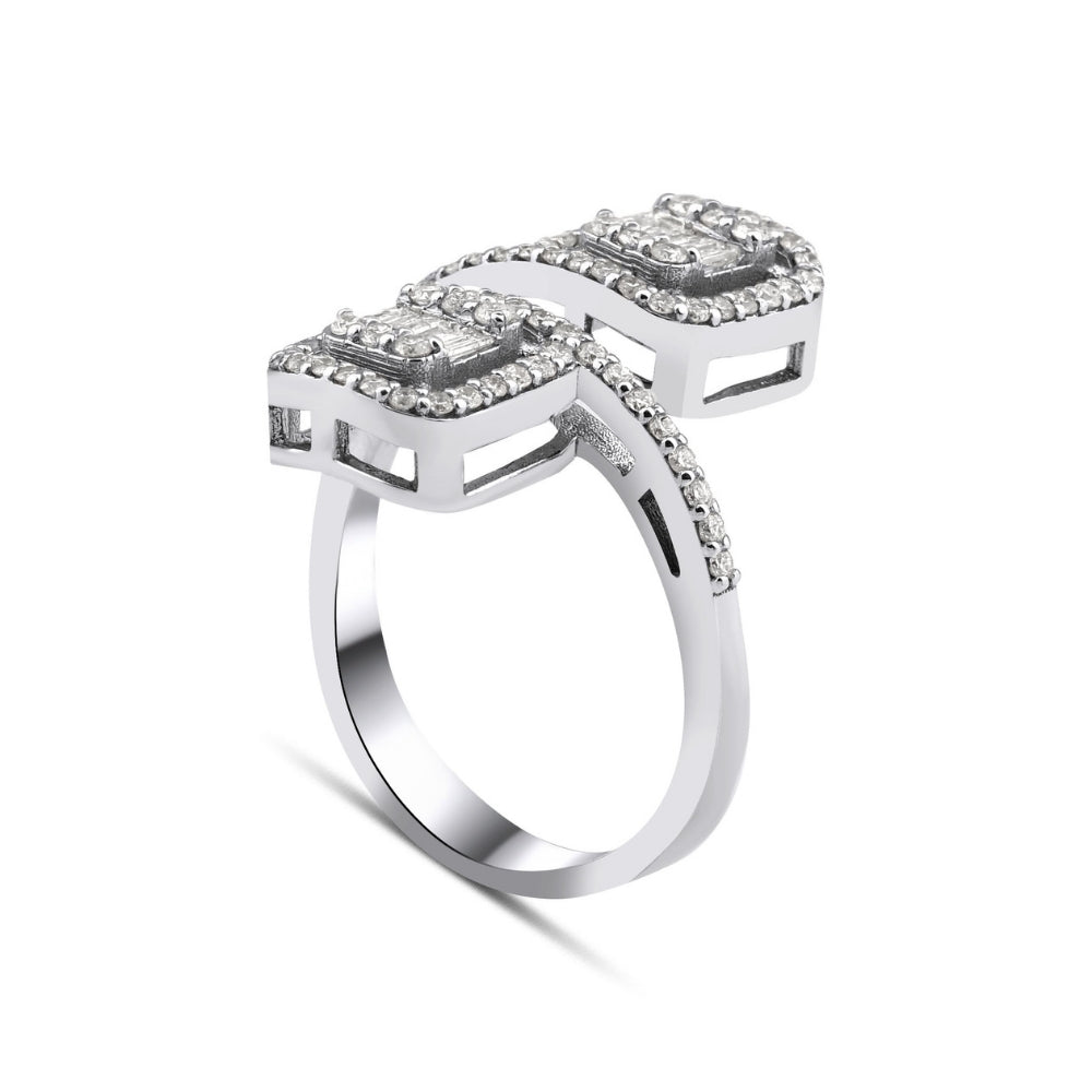 1.20 Karat Pırlanta Yüzük modeli, yaklaşık 4.50 gr ağırlığında 14 Ayar Beyaz Altın kullanılarak özel olarak tasarlanmıştır.