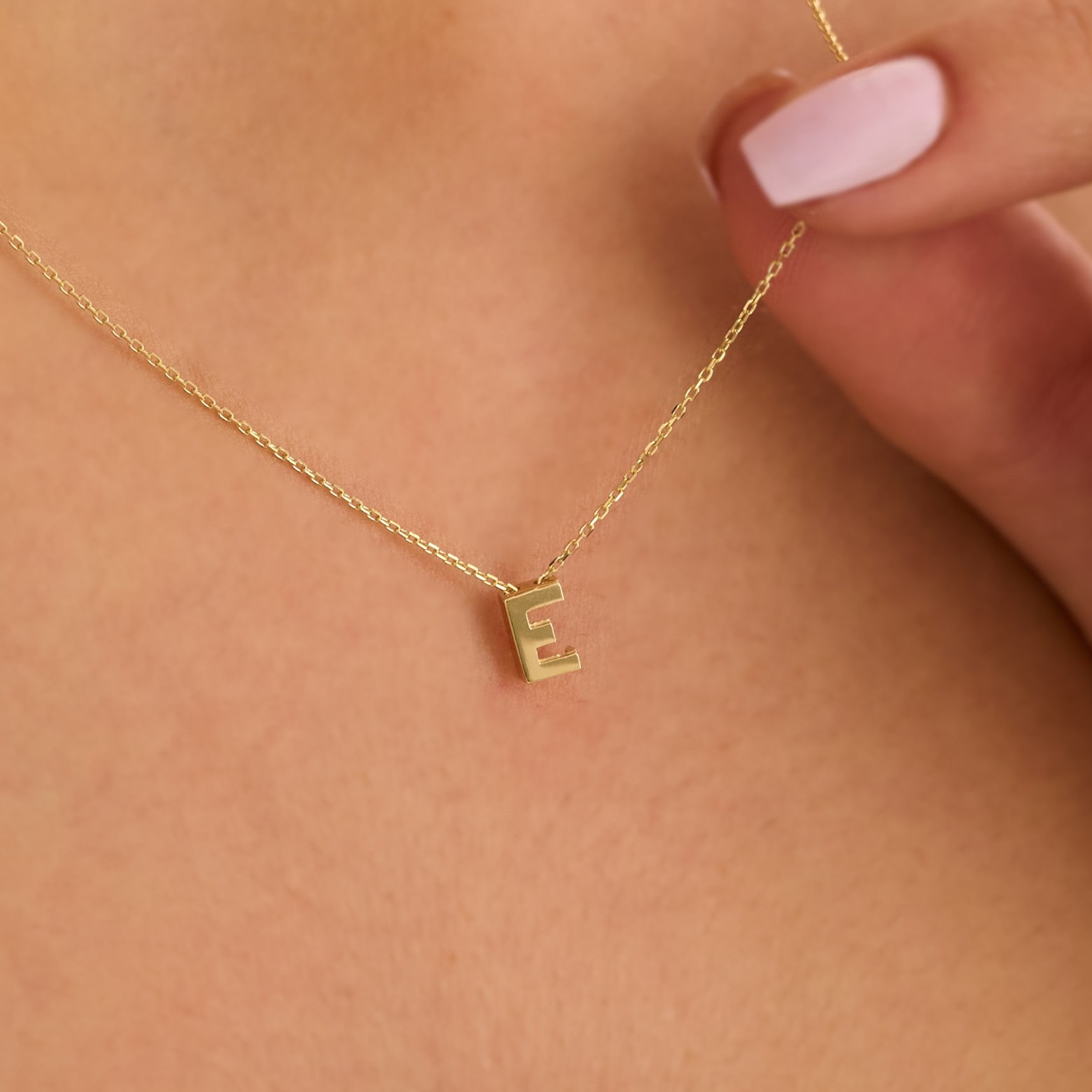 E Harf Kolye modeli, 14 Ayar Sarı Altın kullanılarak özel olarak tasarlanmıştır.
