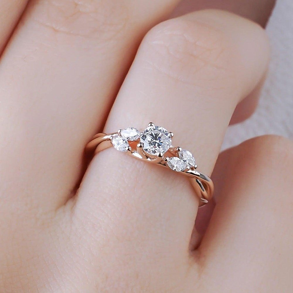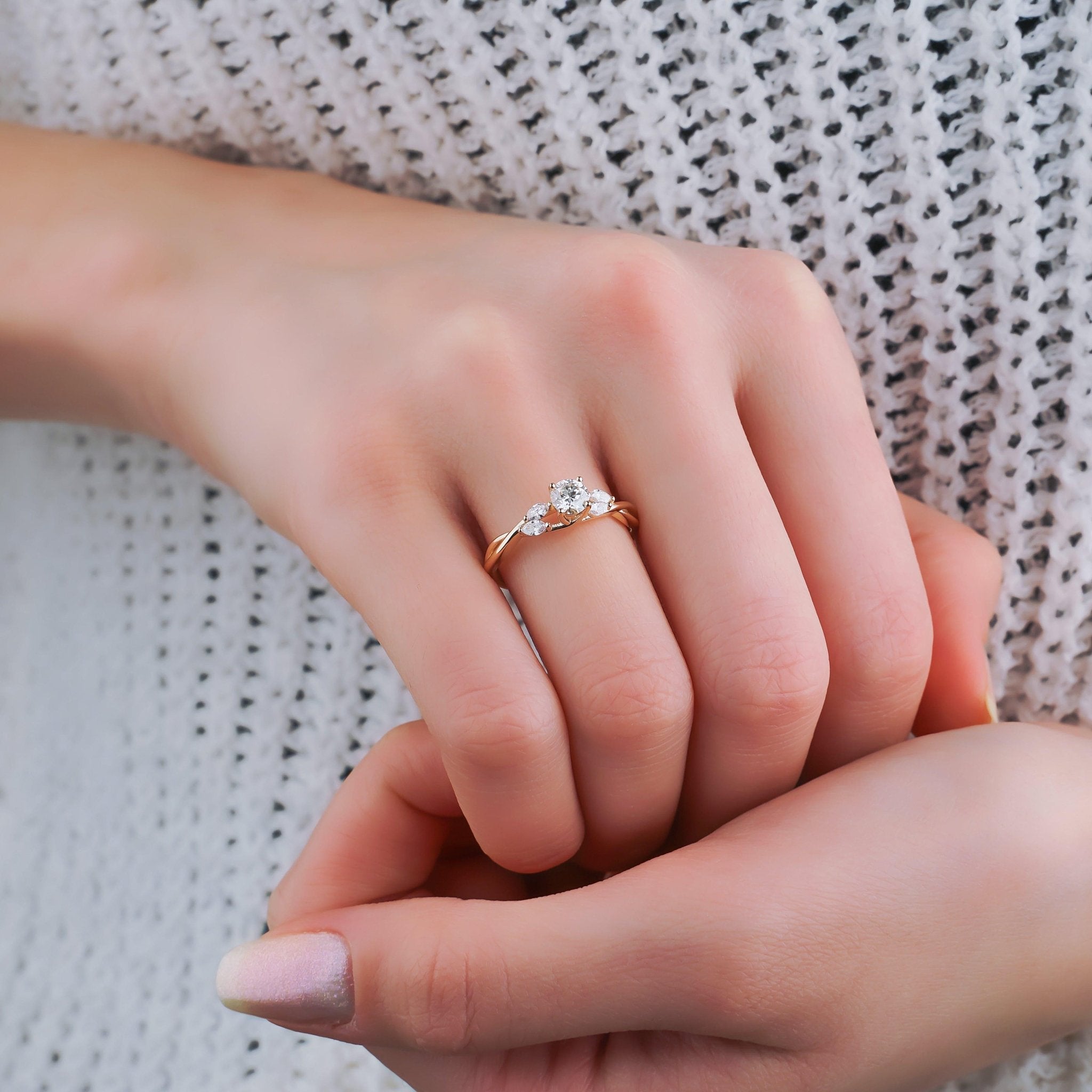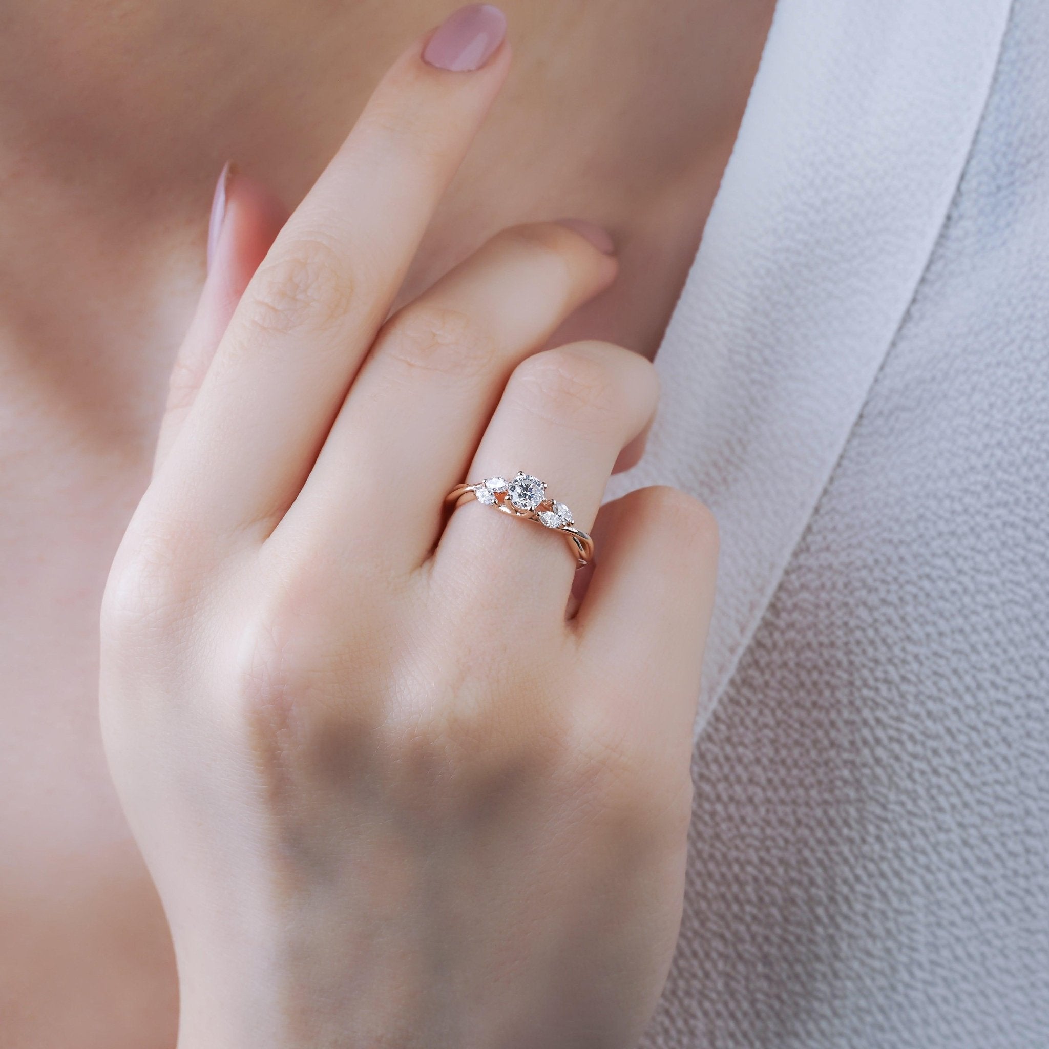 0.30 Karat Yuvarlak Kesim GIA/HRD Tektaş & 0.20 Karat Markizli Pırlanta Yüzük modeli, yaklaşık 2.65 gr ağırlığında 14 Ayar Rose Altın kullanılarak özel olarak tasarlanmıştır.