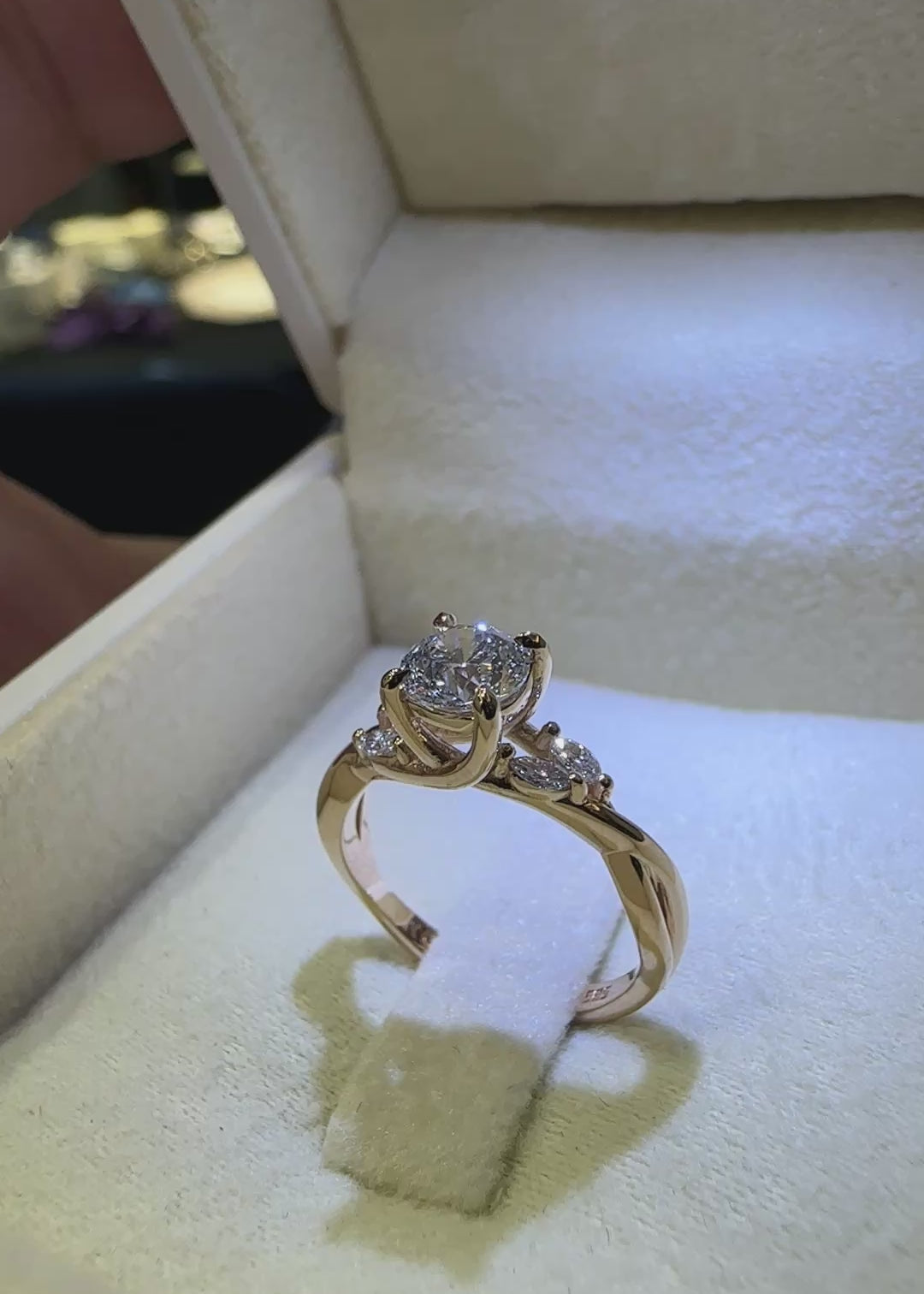 0.40 Karat Oval & 0.08 Karat Yuvarlak Kesim GIA/HRD Sertifikalı Tektaş Yüzük-RNF1422