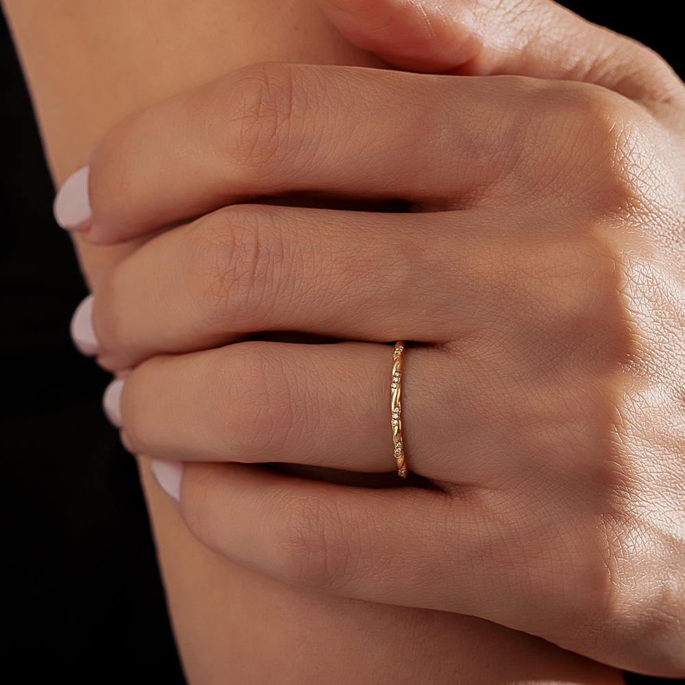 0.10 Karat & 0.08 Karat Yuvarlak Kesim Minimal Pırlanta Yüzük modeli, yaklaşık 1.40 gr ağırlığında 14 Ayar Rose Altın kullanılarak özel olarak tasarlanmıştır.