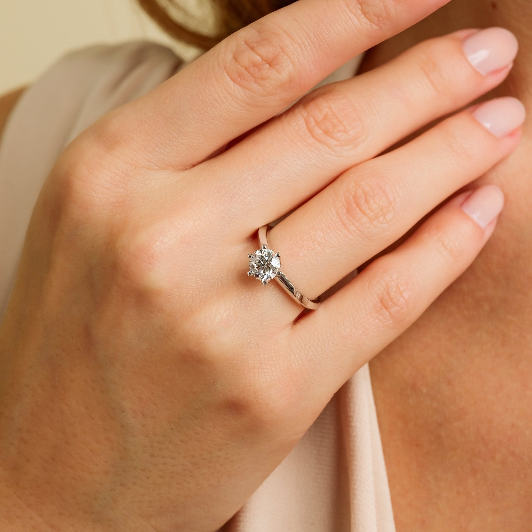 1.00 Karat Pırlanta HRD Sertifikalı Tektaş Yüzük modeli, yaklaşık 3.80 gr ağırlığında 14 Ayar Beyaz Altın kullanılarak özel olarak tasarlanmıştır.