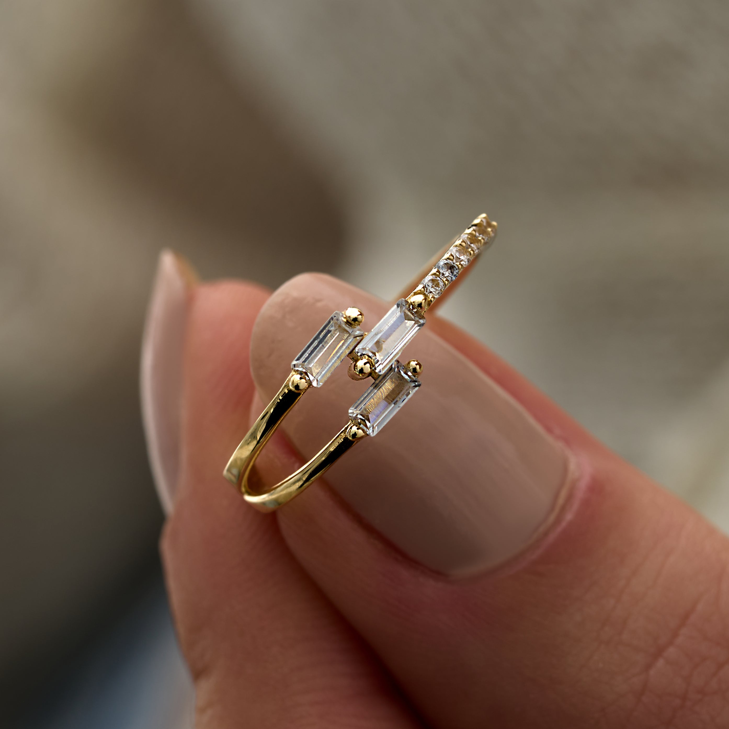 14 Ayar Altın Baget Şeritli Pırlanta Yüzük RG073
